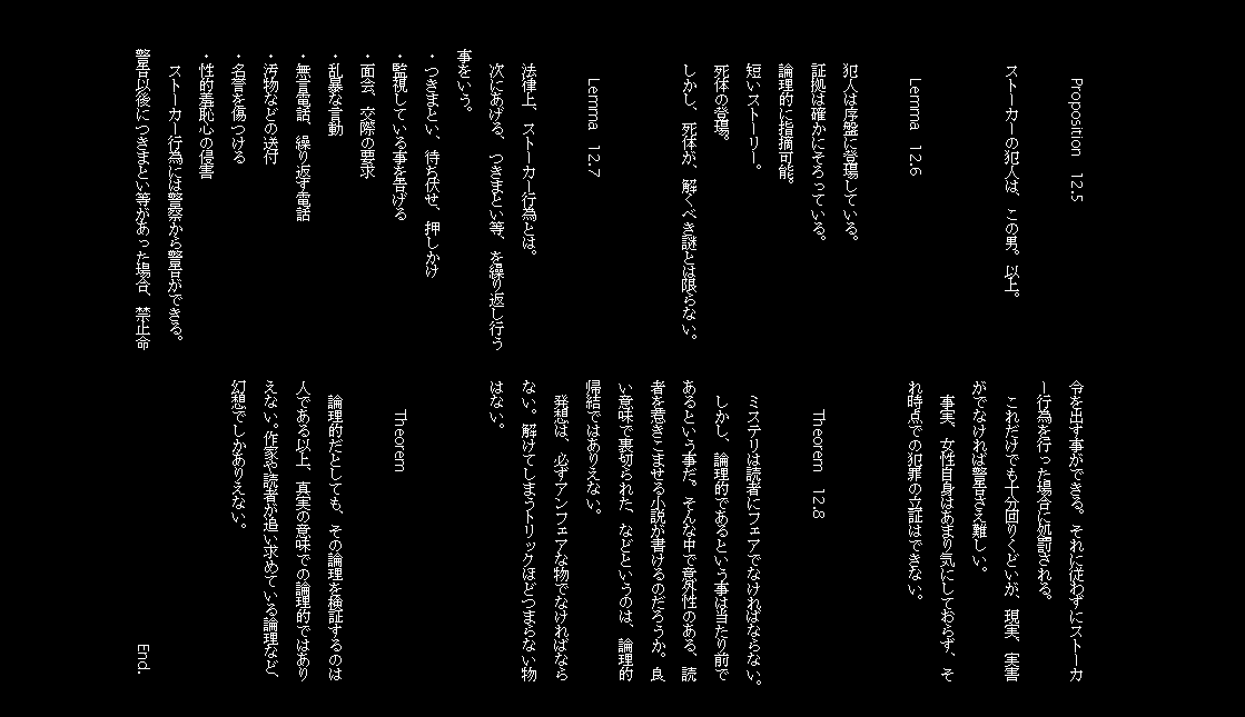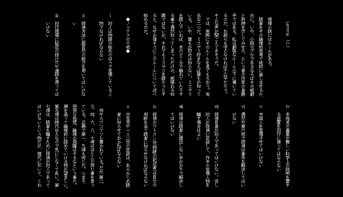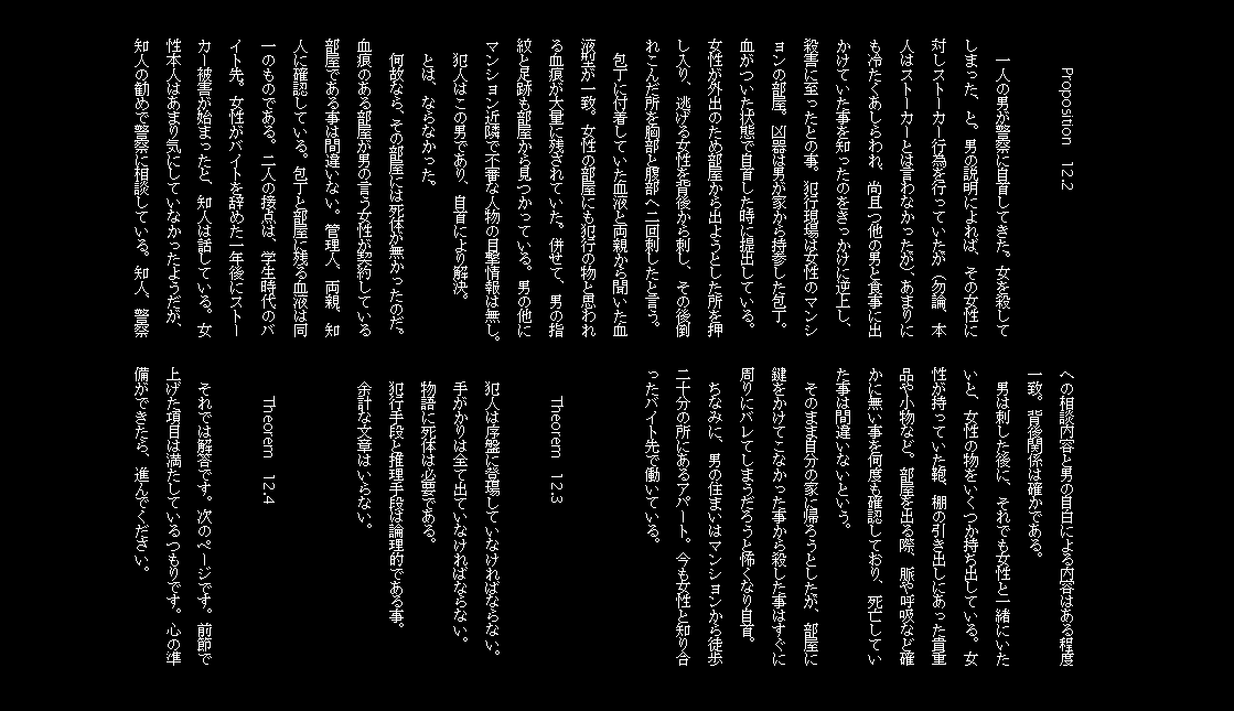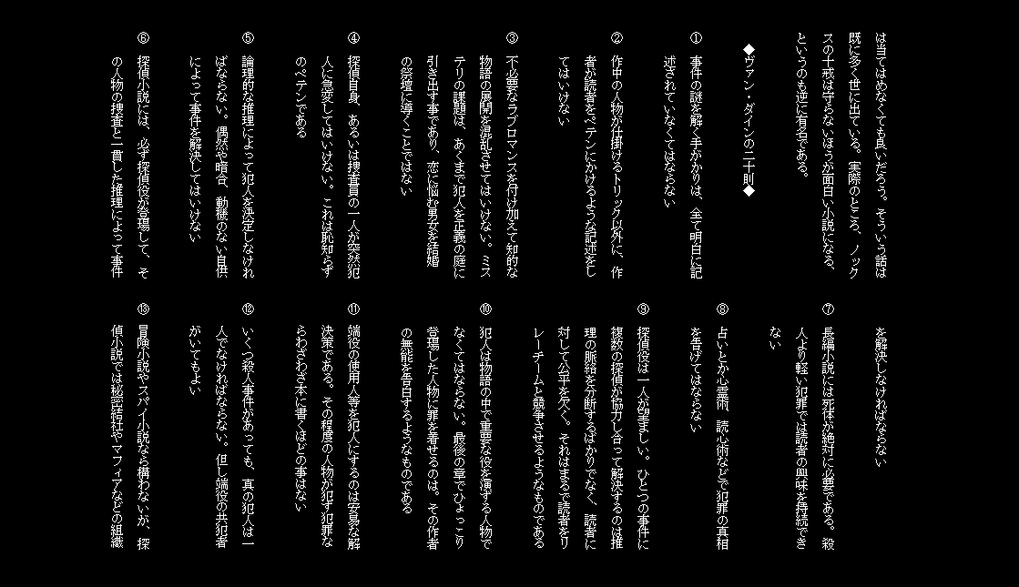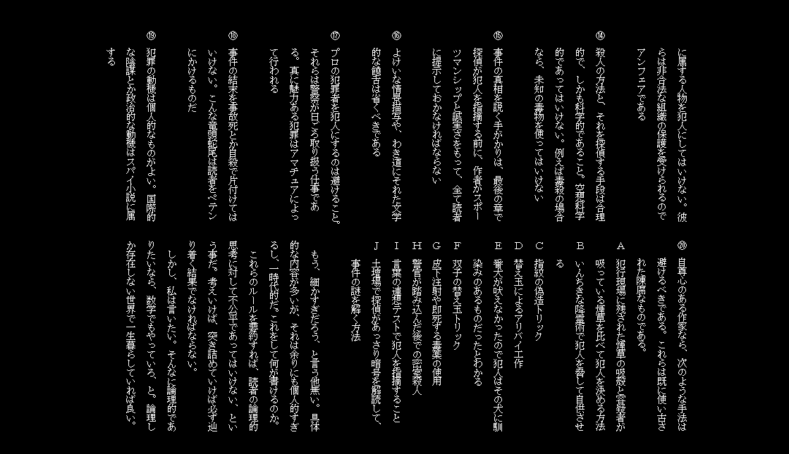 それがミステリらしさを謳ってる作品で、ミステリとは如何なる物か、っていう。