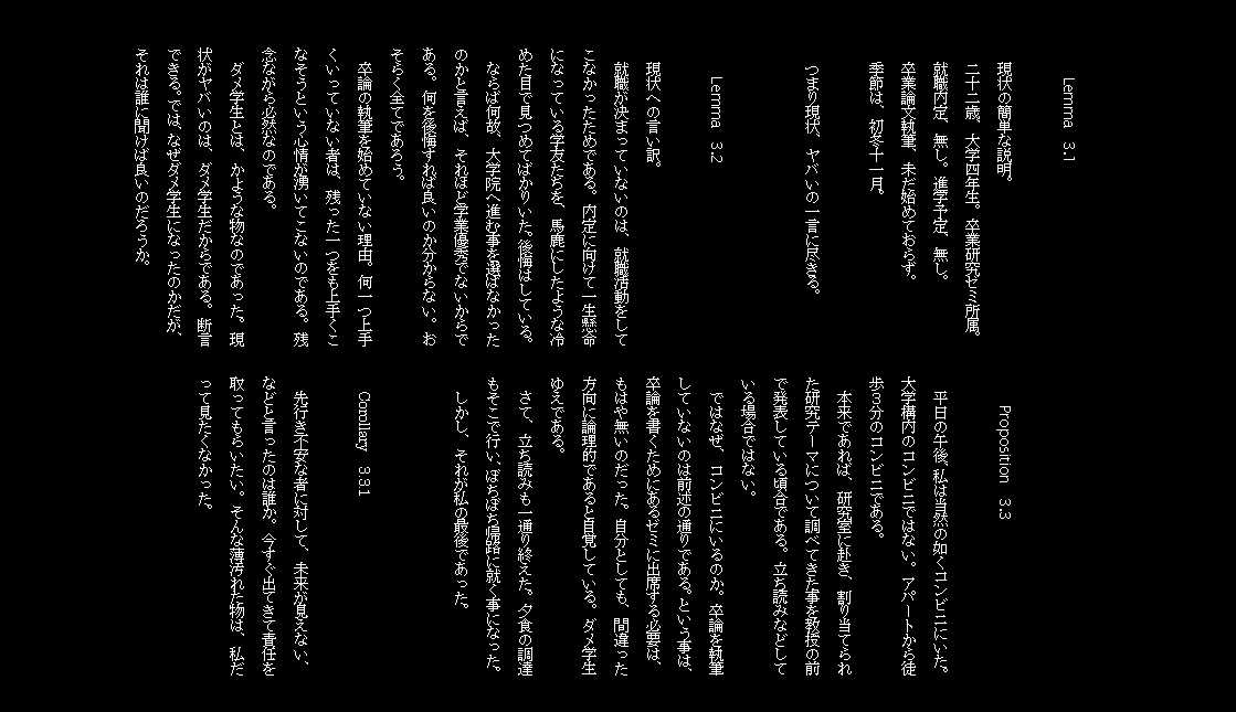 段落は、修士論文の練習ついでに、数学っぽく。(大嘘