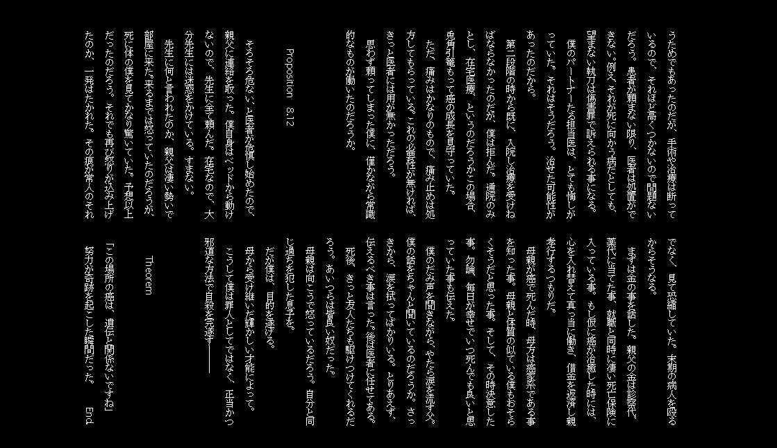 死について、何かこう、面白いアプローチは無いものか、と考えてこうなった。